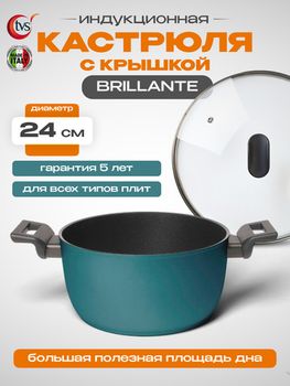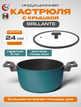 Кастрюля с крышкой антипригарная TVS Brillante Induction, 24 см/5 литров